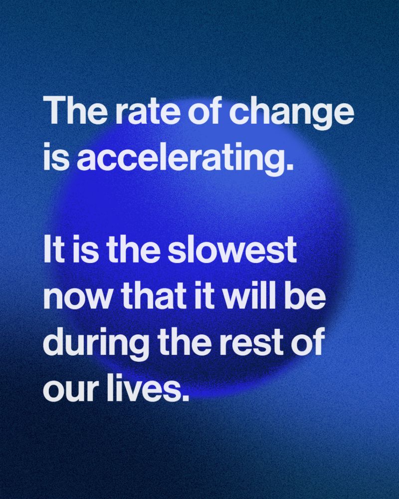 The pace of change is the slowest now that it will be during the rest of our lives.