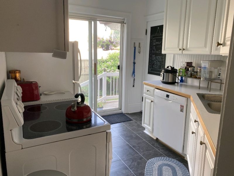 I had not anticipated that they would have such a hard time because my tenant had measured the old appliances and I was careful to order something that would fit in its place. It’s a ground floor unit with a patio door to the kitchen and also a standard size front door. The fridge didn’t have a water hookup, just an electrical cord.