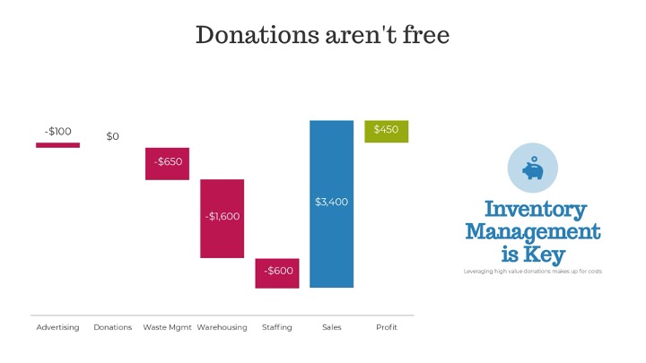 - Discounting was focused on inventory turn-over to minimize storage costs and deal with the deluge of donations the store are required to process