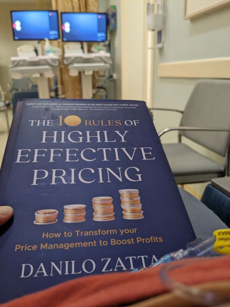 I decided to try and go screen free at chemo yesterday so I brought along my signed copy of Danilo Zatta’s new book “10 Rules of Highly Effective Pricing”.