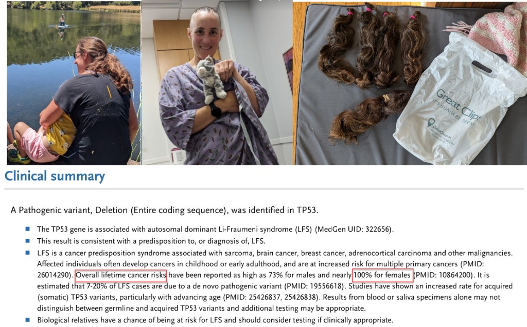 In 2020 I got results of a genetic test that said “Overall lifetime cancer risks have been reported as high as 73% for males and nearly 100% for females.”